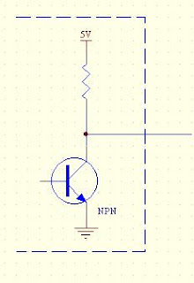 Pada open collector, keluaran dari PORT hanya memakai satu transistor NPN saja, dengan rangkaian sebagai berikut: